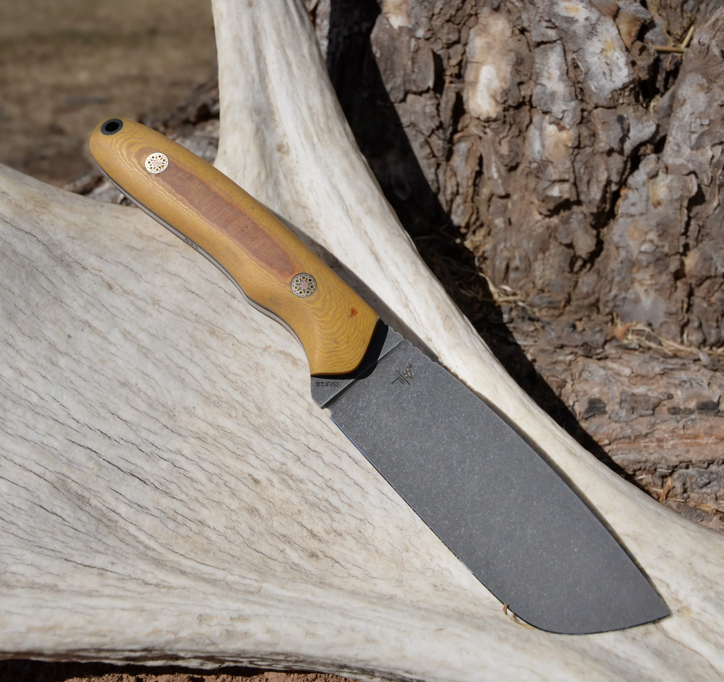 CPM S35VN - Vintage Butterscotch Micarta Scales - Black G10 Liners & Lanyard - Mosaic Pins - Acid Stonewash Finish